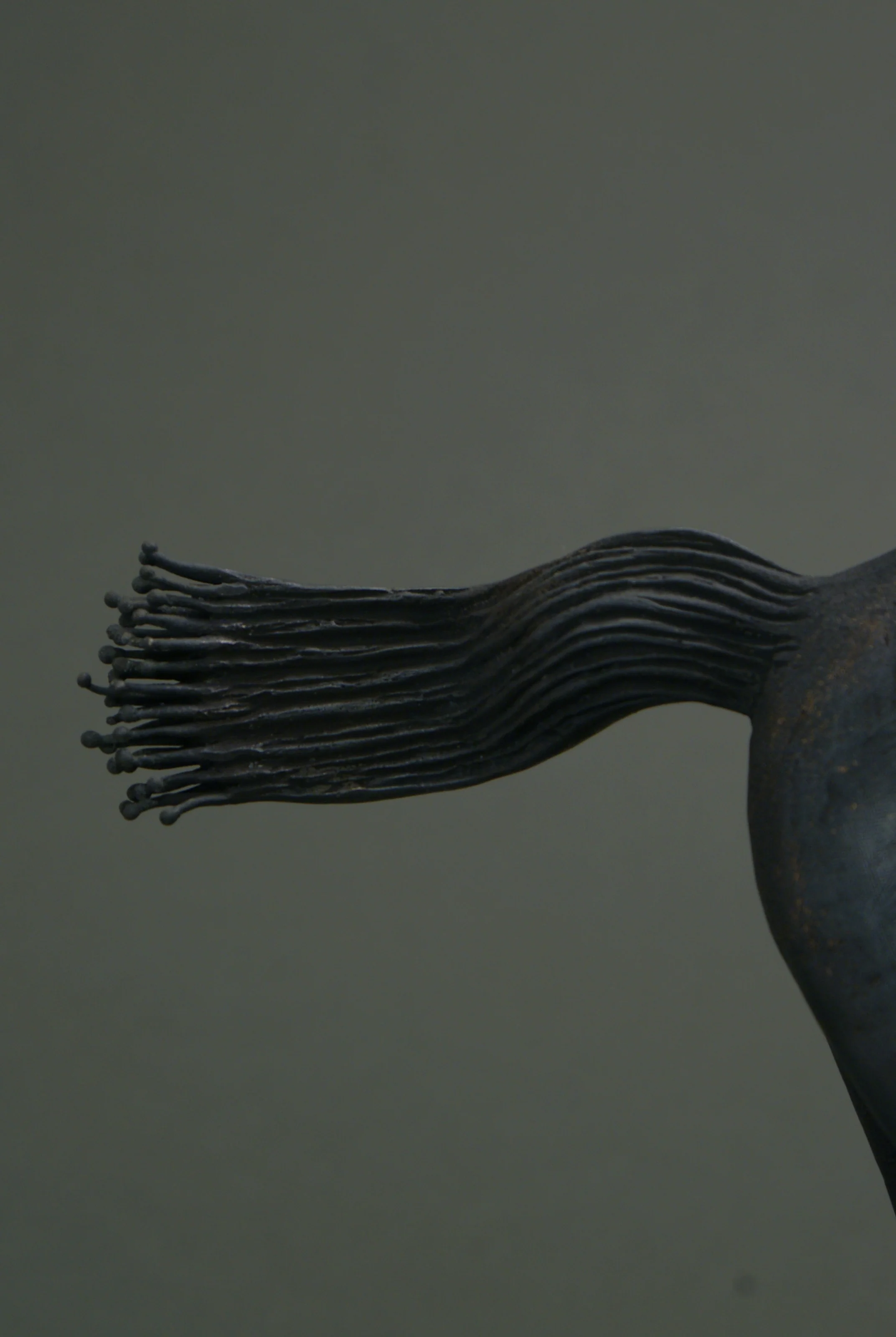 Very elegant and yet wild bronze sculpture of a Witch Horse portrays an animal from ancient Lithuanian folk tales. It is not an ordinary creature, this horse serves a Witch and carries her through the skies.