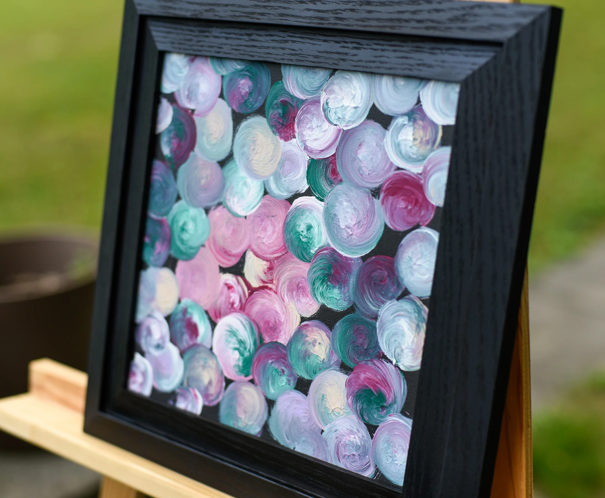 This colourful and very uplifting abstract painting belongs to the "Summer Vibes" series. The artist was inspired by warm and colourful summer of 2018 - flowers bloom, festive moods and festival fireworks. All these special moments of the summer are put together in a series of small and vibrant abstractions, created in unanimous style.