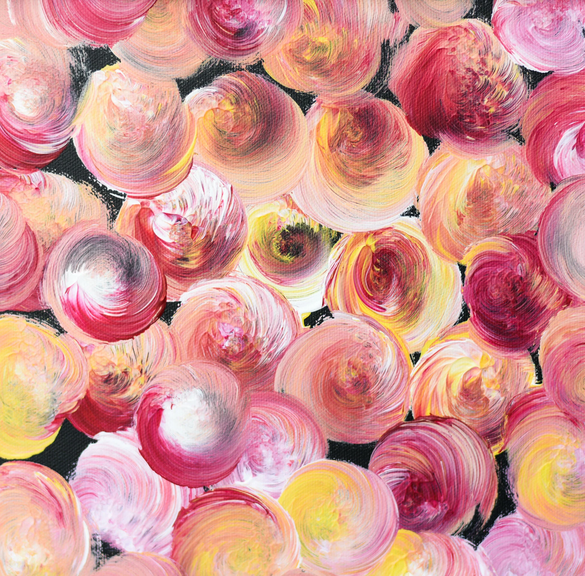 The painting created by Swiss based artist Gina Vor belongs to the "Summer Vibes" series, inspired by warm and colourful summer of 2018 - flowers bloom, festive moods and fireworks. All these special moments of the summer are put together in a series of small and vibrant abstractions, created in unanimous style.
