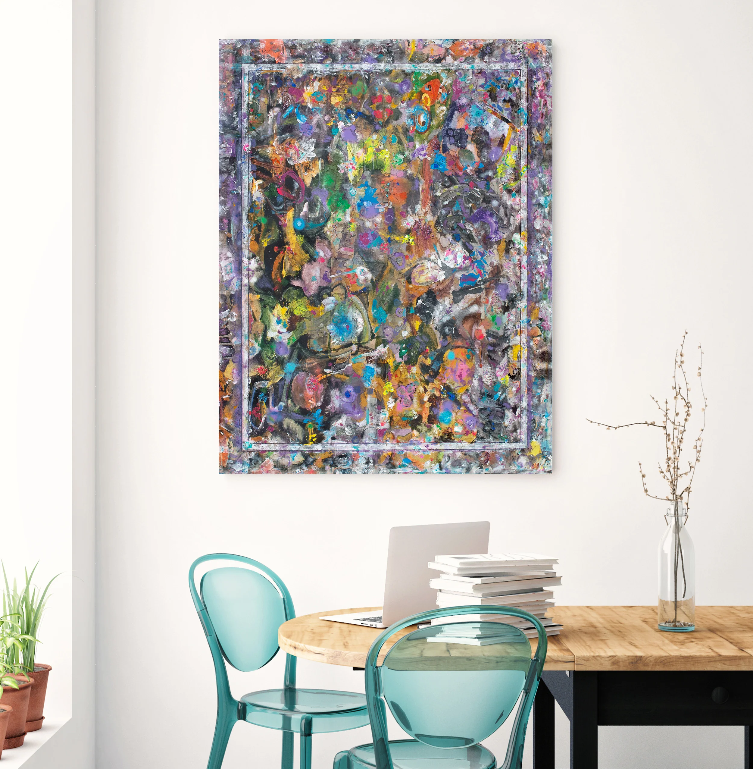Abstract expressionist painting on canvas, colourful original artwork, stretched and ready to hang.